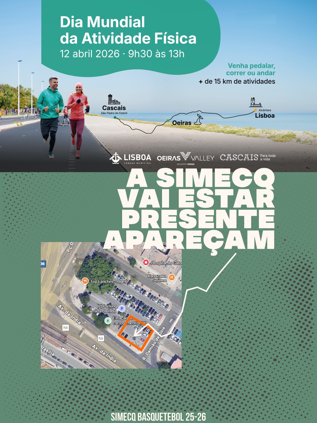 No próximo domingo, dia 12 de abril, a SIMECQ vai marcar presença no Dia da Atividade Física, uma iniciativa que decorre ao longo da Marginal, entre Alcântara e Cascais, reunindo várias entidades ligadas ao desporto.